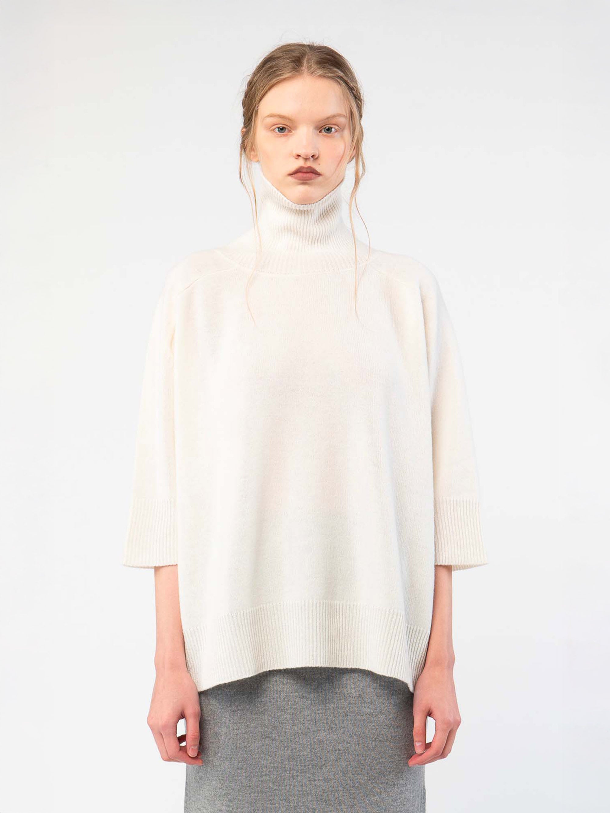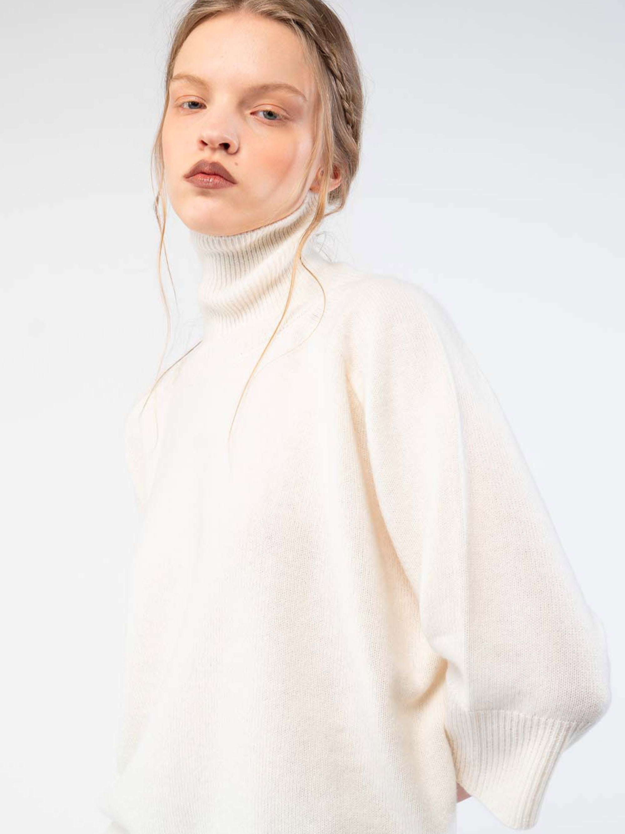 Cashmere blend turtleneck 3/4 sleeves sweater