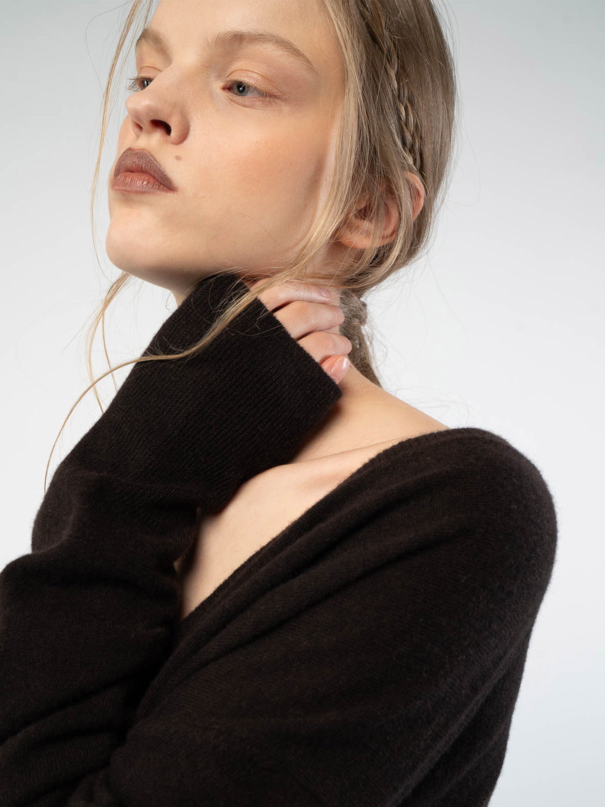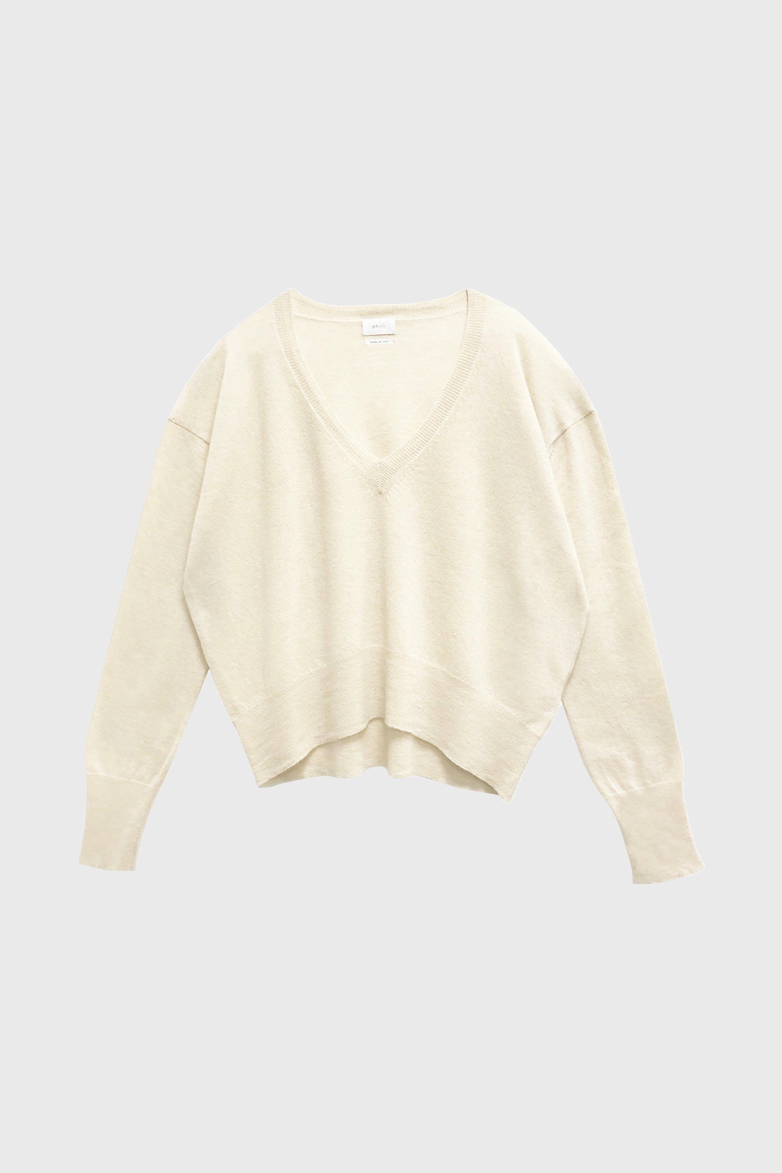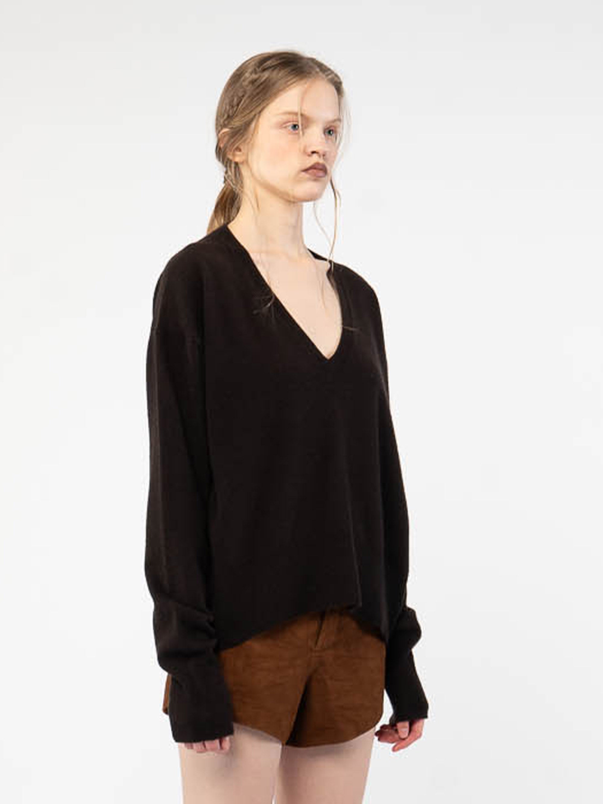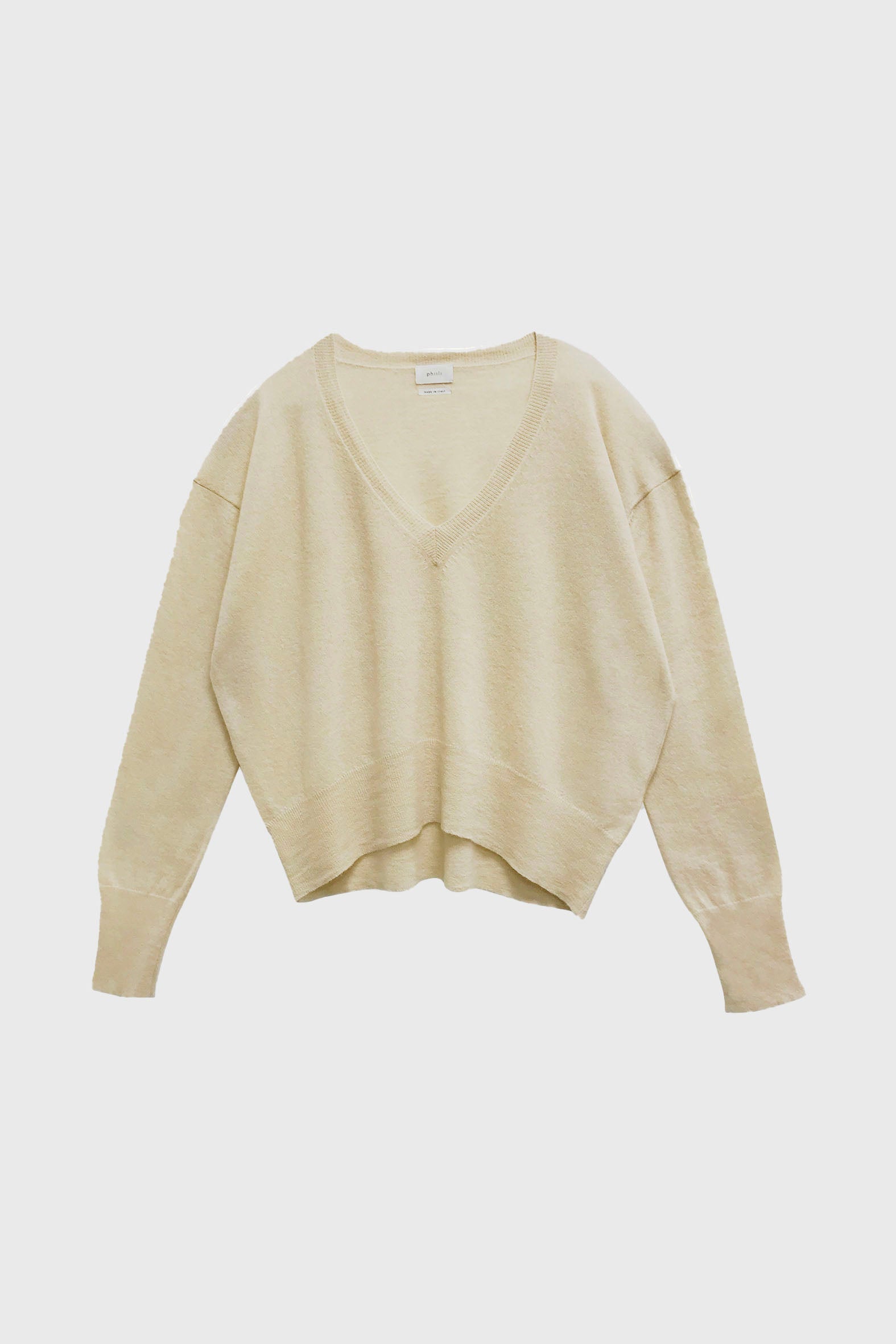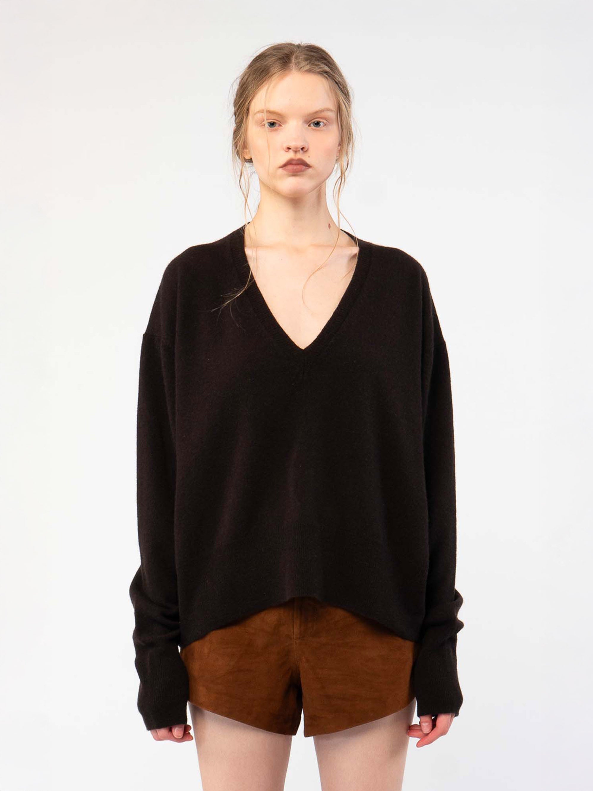 CASHMERE BLEND V-NECK OVERSIZED SWEATER